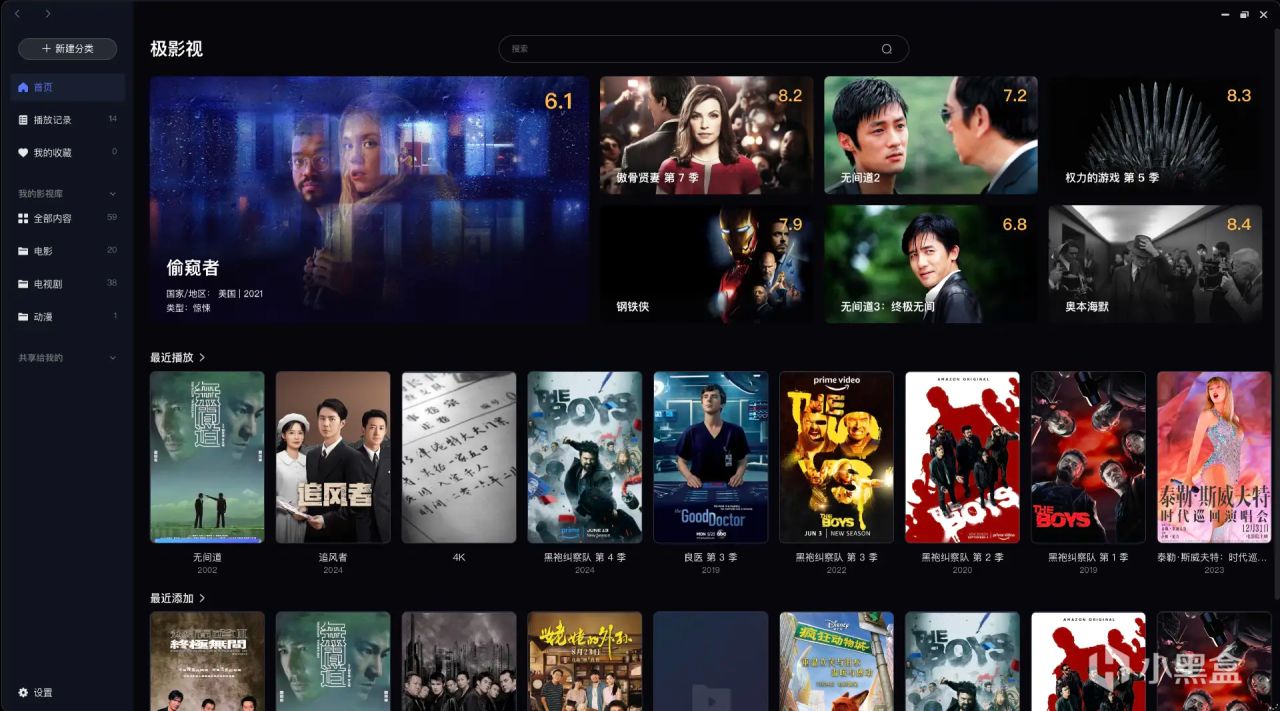 ▲首先是私有影音库功能,极空间的极影视已经大版本升级到2.0,UI设计更加现代易用,且支持安卓手机平板与安卓电视、ATV、Windows、MacOS、iOS等常见硬件平台,除了安卓之外,其他都已经支持了杜比视界。全面支持了HDR视频。匹配的批量处理、不匹配分类、视频、音频维度的专业筛选、基于个人影音库的智能内容推荐、按演员维度内容的汇总、已看标记、列表倒序、列表多样式。