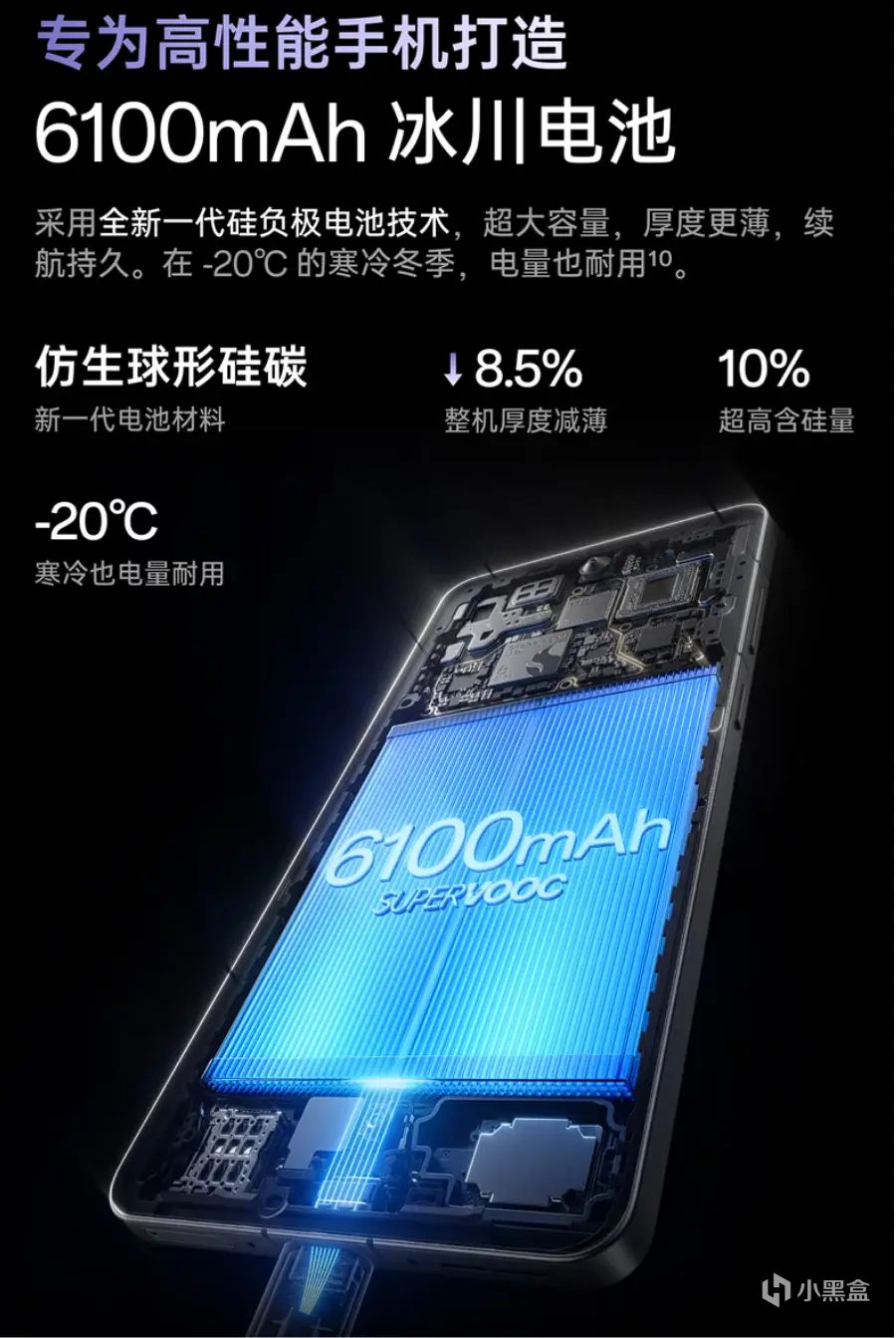 ▲说到持久,一加Ace 5 Pro 更是配备了6100mAh超大容量的「冰川电池」,不仅与一加13同技术,而且容量上比一加13所配备的电池还大了100mAh,不仅续航持久,而且即使在-20°C下也依旧耐用,再配合着100W有线快充,可以做到无忧使用。