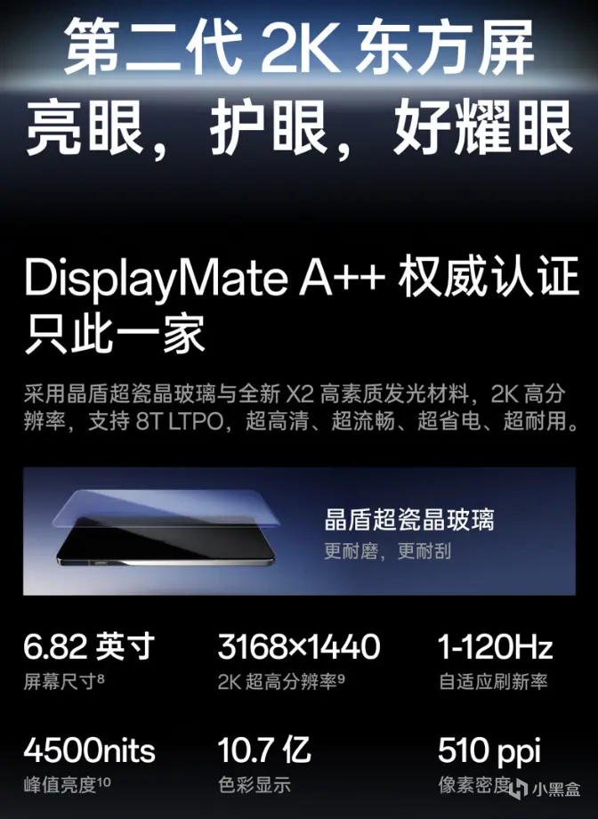 ▲说完了游戏性能,我们再来说说屏幕方面,一加13则搭载了全球首个获得DisplayMate A++认证的第二代2K东方屏,这款屏幕在色彩显示、亮度均一性等多项表现上都达到了全球顶尖水平。它基于一加与京东方全新独家定制的X2发光材料,同时首发搭载独家自研屏幕芯片Display P2,不仅色彩显示更准确,还拥有更低的屏幕功耗,最近项目太多,一直很想测这款屏幕的素质但是没有得偿所愿,我等未来有时间了再来详细测试一下。