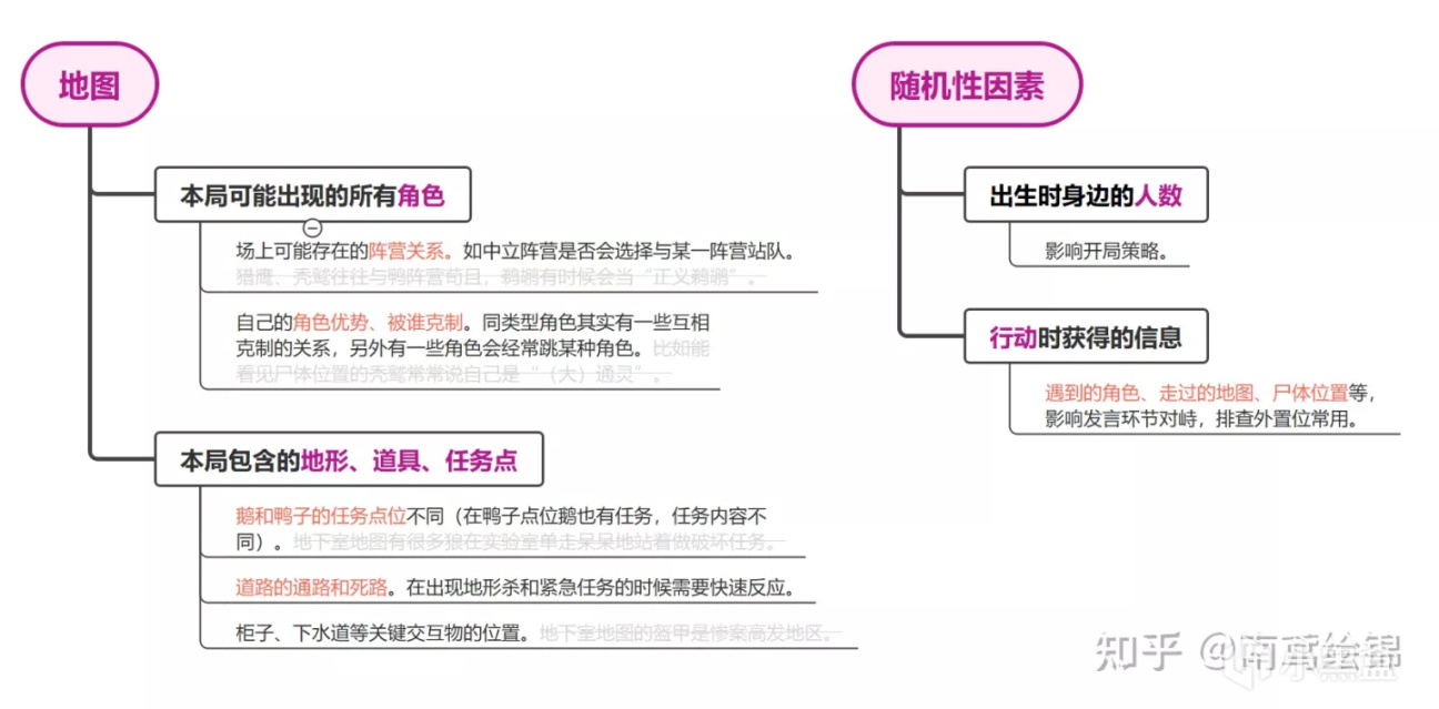 上文反复提及的【局内】一词,指的是报警开会前鹅鸭满地走这一阶段,期间玩家可以自由操控自己的角色。与传统狼人杀不同,玩家在思考策略时需要额外考虑这一环节中的地图和随机因素,包括: