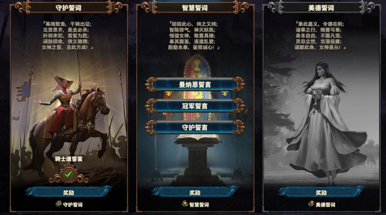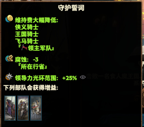 每一位领主和事务官都能完成「誓言」做完誓言任务即可解锁兵种增益。