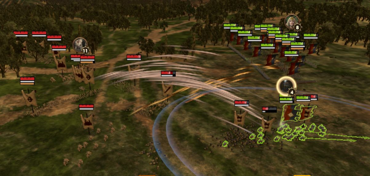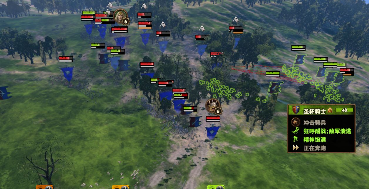 每当敌人领主与其部队分开时,找到机会就派骑兵去围住群殴他。等领主一死,部队过不了多久就会崩溃。
