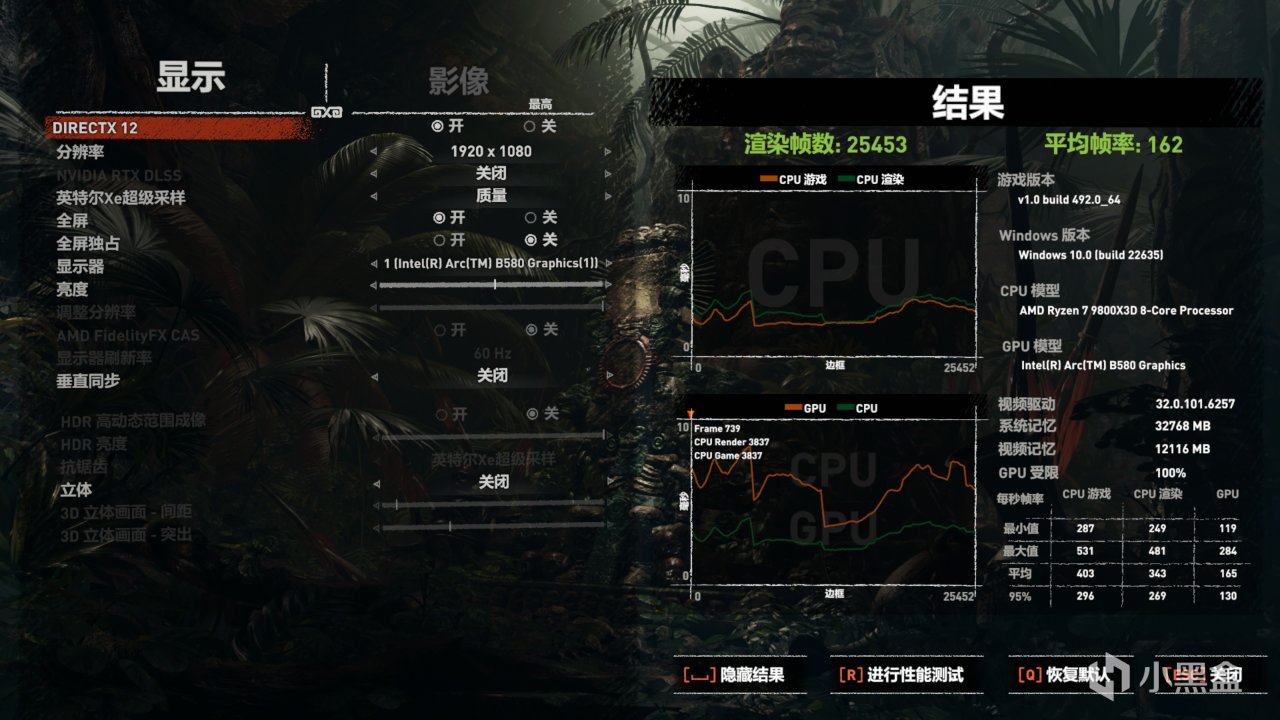 古墓11上,B580开了XeSS之后能提升大概20%的帧数,画质看着跟开了TAA差不多。开了XeSS之后4K帧数也是来到了70以上,1080p则能喂饱165Hz的屏幕了