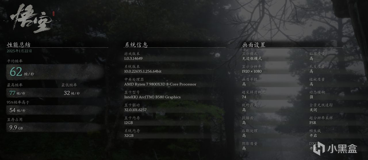 下面是游戏测试,首先是我最关心的黑神话悟空,测试结果的话1080P下玩一玩还行,开到高特效也能撑住60帧,能玩级帧数