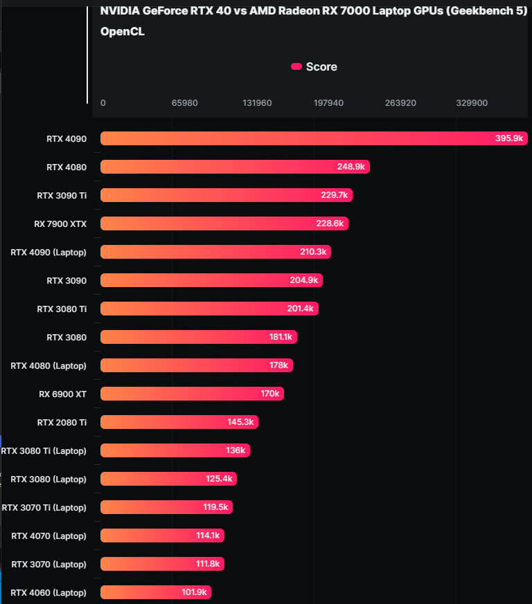 随着 CES 2023 活动中,NVIDIA 和 AMD 接续推出新一代笔电 GPU 独显,对于有意购买新笔电的朋友来说,一定会想知道性能跟上一代比,究竟快了多少。虽然发表会中官方都有分享比较数据,但毕竟是官方版,多少跟实际一定有些差异,好消息是,近日在国外 Geekbench 数据库中,就出现好几款新一代 GPU 的跑分结果,下面整理给大家。