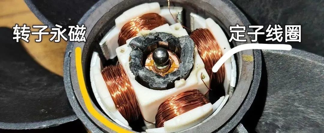 “電磁轉矩”,是電機得以驅動扇葉的核心。拆開一把單相無刷風扇,我們不難觀察到其中的結構: