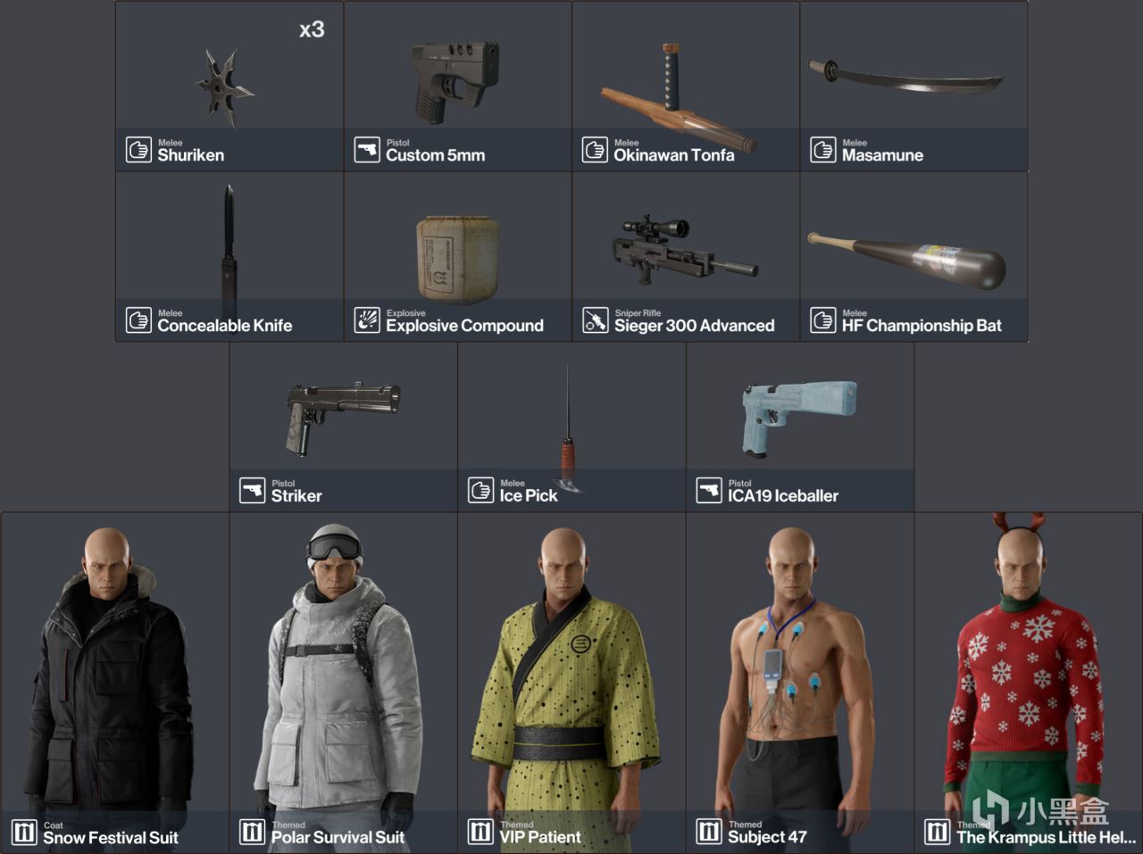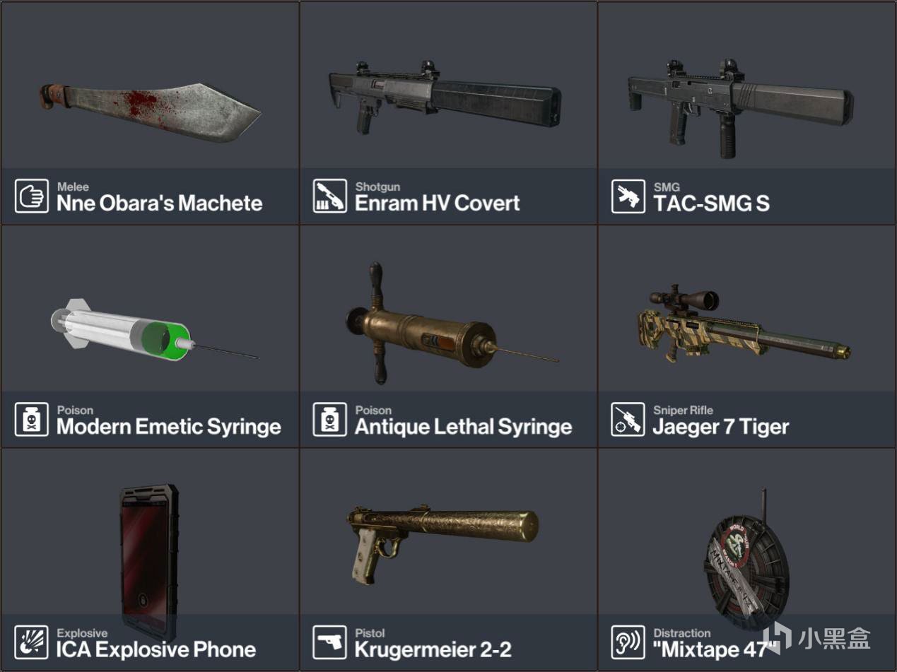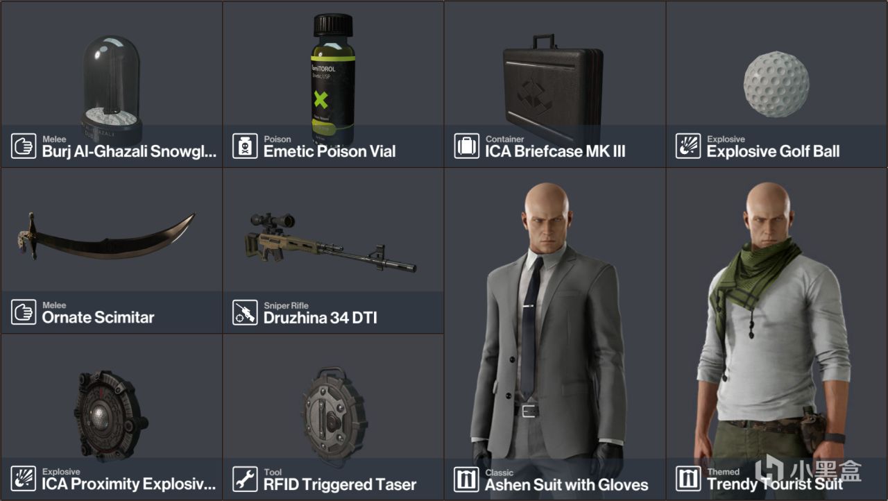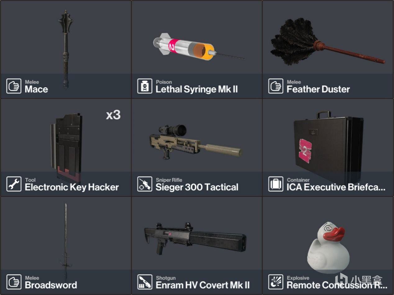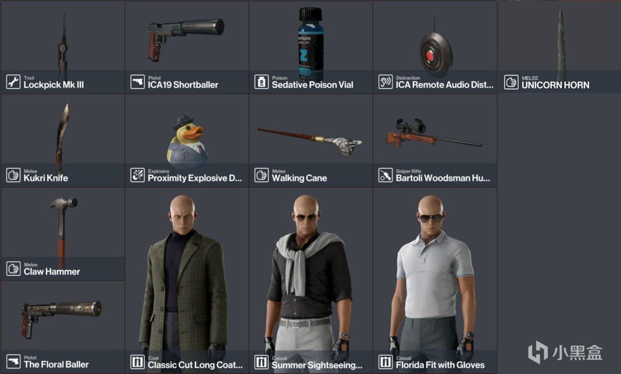 众所周知,丹麦小作坊IOI制作的对标某划时代游戏的游戏杀手暗杀世界作为一款从购买就开始的解谜游戏,如何获取其中换皮各异,能力一致的物品们也是一个谜团。本文章就整合了论坛和Steam社区的教程贴,同时附上道具图片,来让各位新手尽快解锁不同道具,早日走上速通和折磨契约的不归路。。。