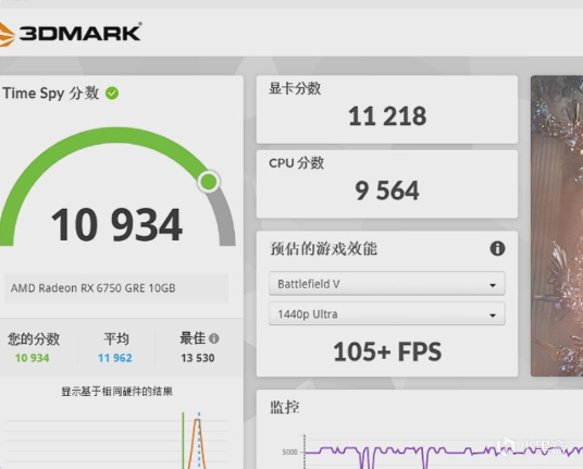 华硕的6750GRE 10G巨齿鲨 在3D MARK TIME SPY 得分11218分,