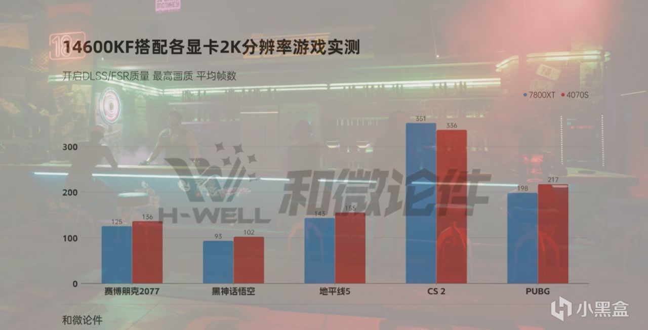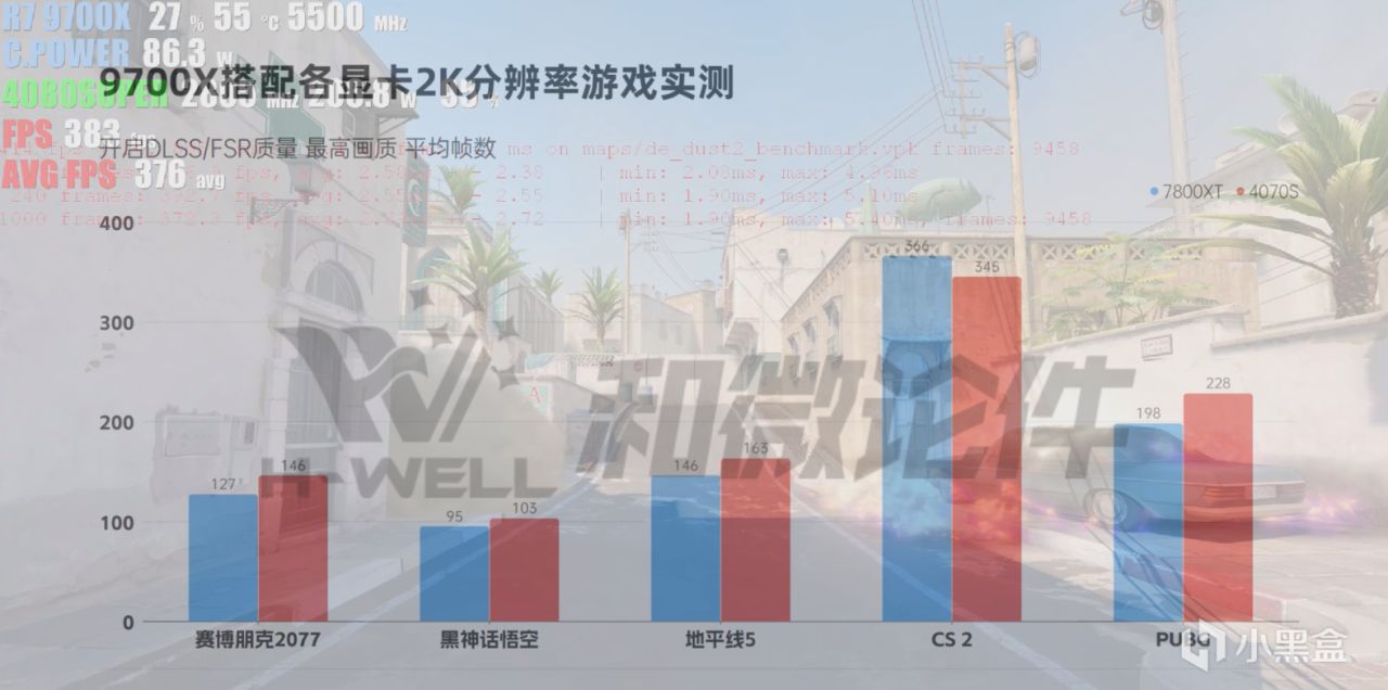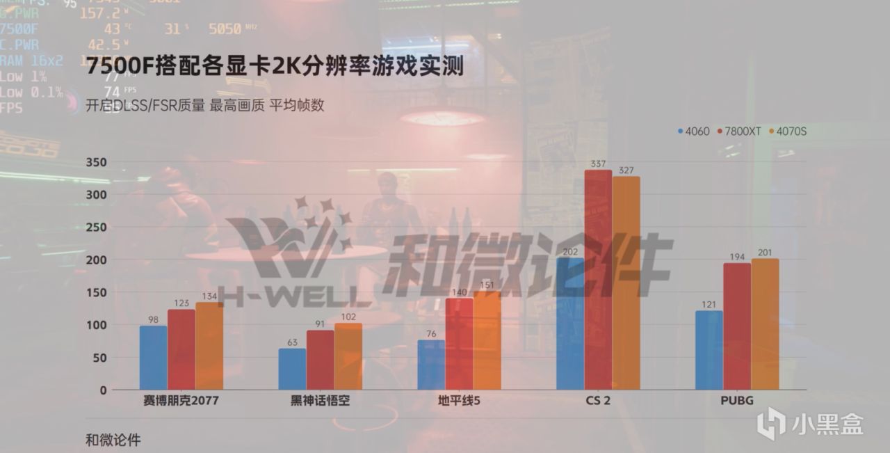我们为7800XT以及4070SUPER是进行了2K分辨率的测试,测试结果都要比之前用7500F搭配帧数高一点,7800XT在2K分辨率下已经没有任何瓶颈了,如果我们有生产力方面的需求,4070SUPER在这方面的效率的确是要好于7800XT。