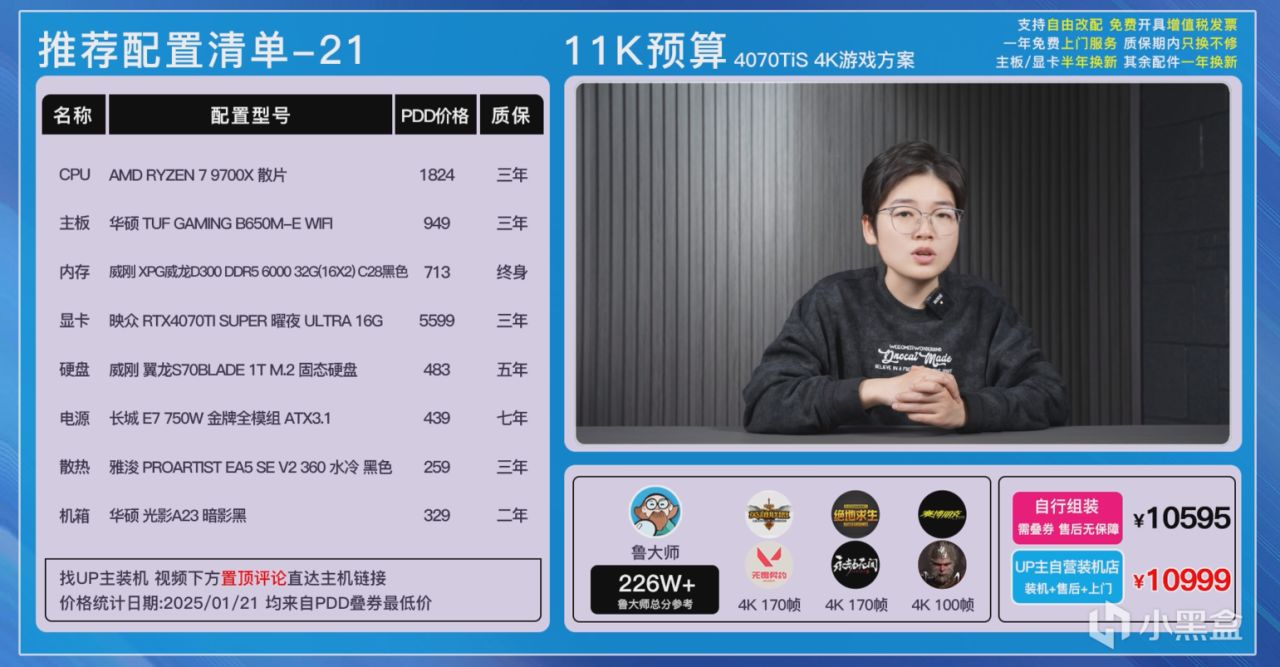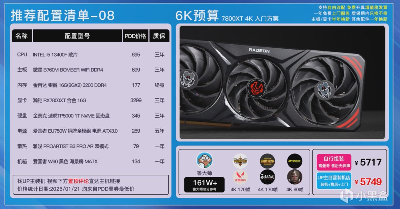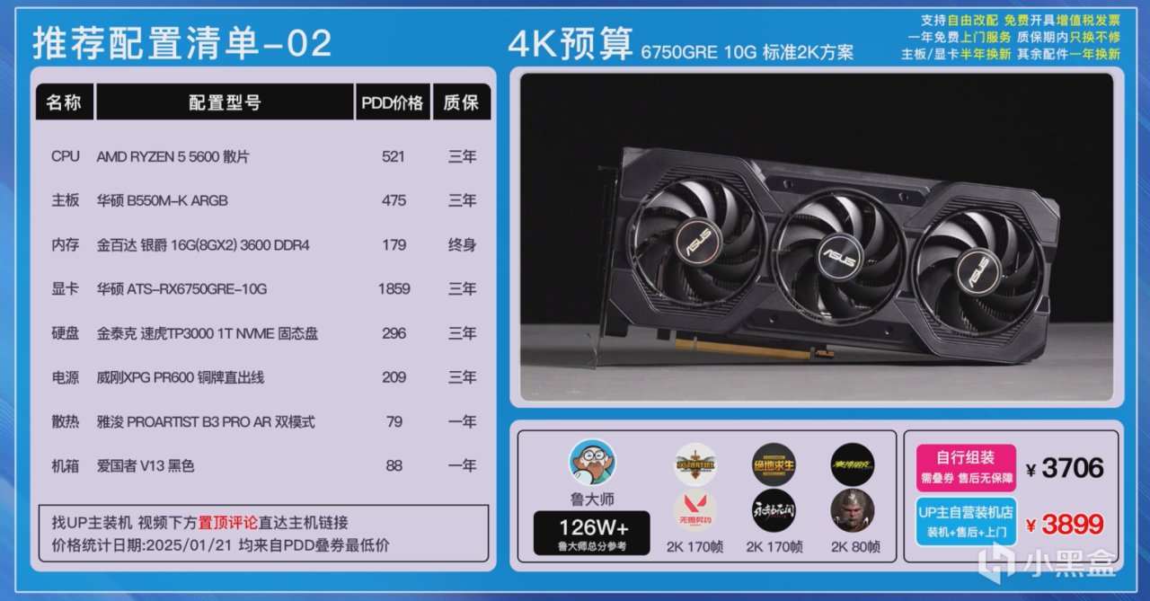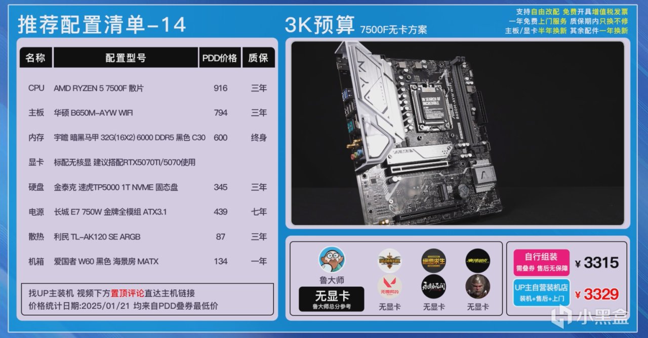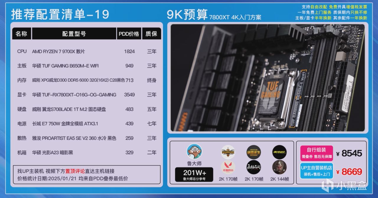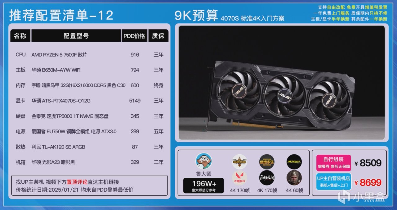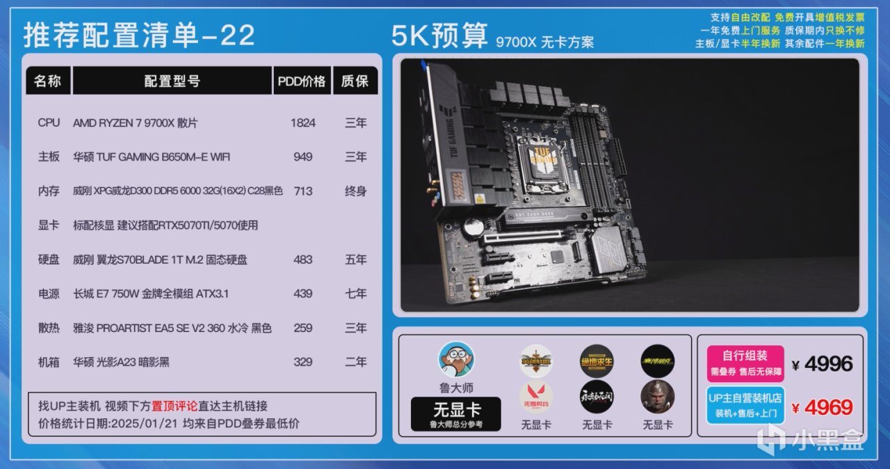 本期文章没有单独做出9600X的配置推荐,因为实际上你直接把9700X这几套的CPU换成9600X,就是完美答卷。