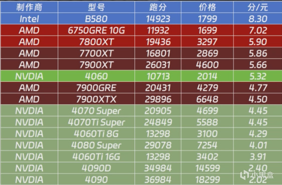 整机的预算在3-6K,能选到的全新显卡还是非常多的,A卡这里有6750GRE 10G、7700XT甚至是7800XT,N卡也可以选择4060和4060Ti,intel这里新发布的B580同样也值得我们考虑一下,在这6张显卡中,7700XT和4060Ti这两张显卡目前不推荐购买,7700XT的价格从双十一结束后价格是回调到了接近2900元,但是7800XT最近很多型号都在降价,这两张显卡的差价在300元左右,大家可以自行决定选择哪一张显卡。4060Ti不推荐的理由是因为这张卡英伟达削减产能转移到了50系列显卡上,导致目前4060Ti价格普遍来到了3200元左右,有这个预算在A卡这里同样可以选择性能更强的7800XT,所以4060Ti也不推荐近期购入。在我们的显卡不能碰文章中,剩下4张显卡位的性价比指数都是非常高的。