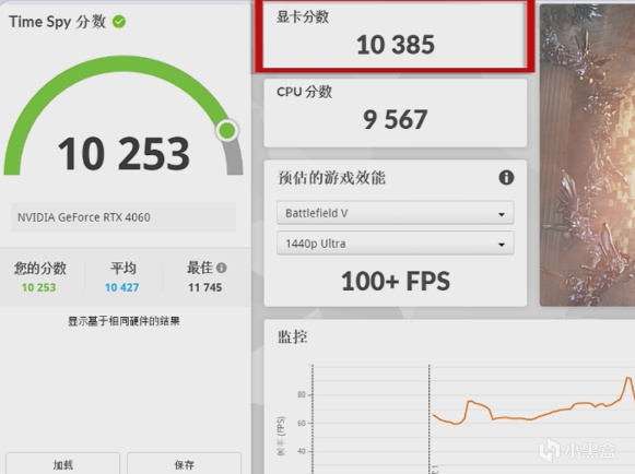 电竞叛客的4060 X2W在3D MARK TIME SPY 得分10385分,