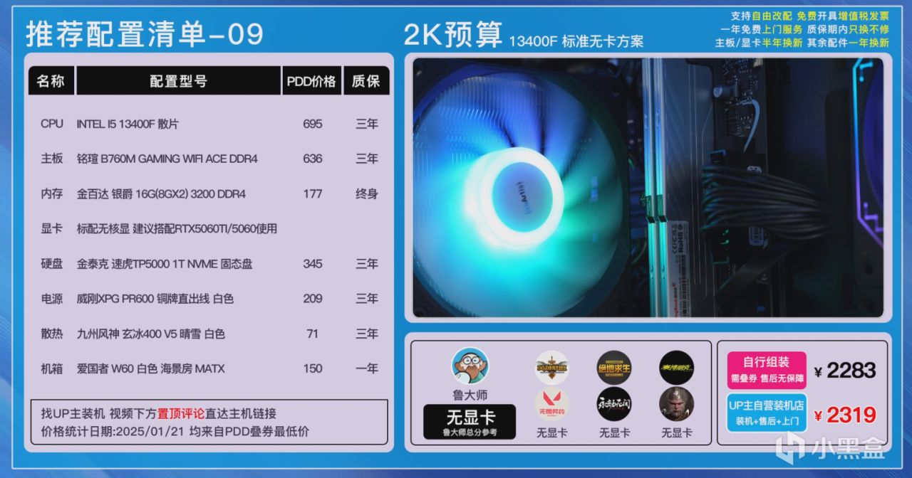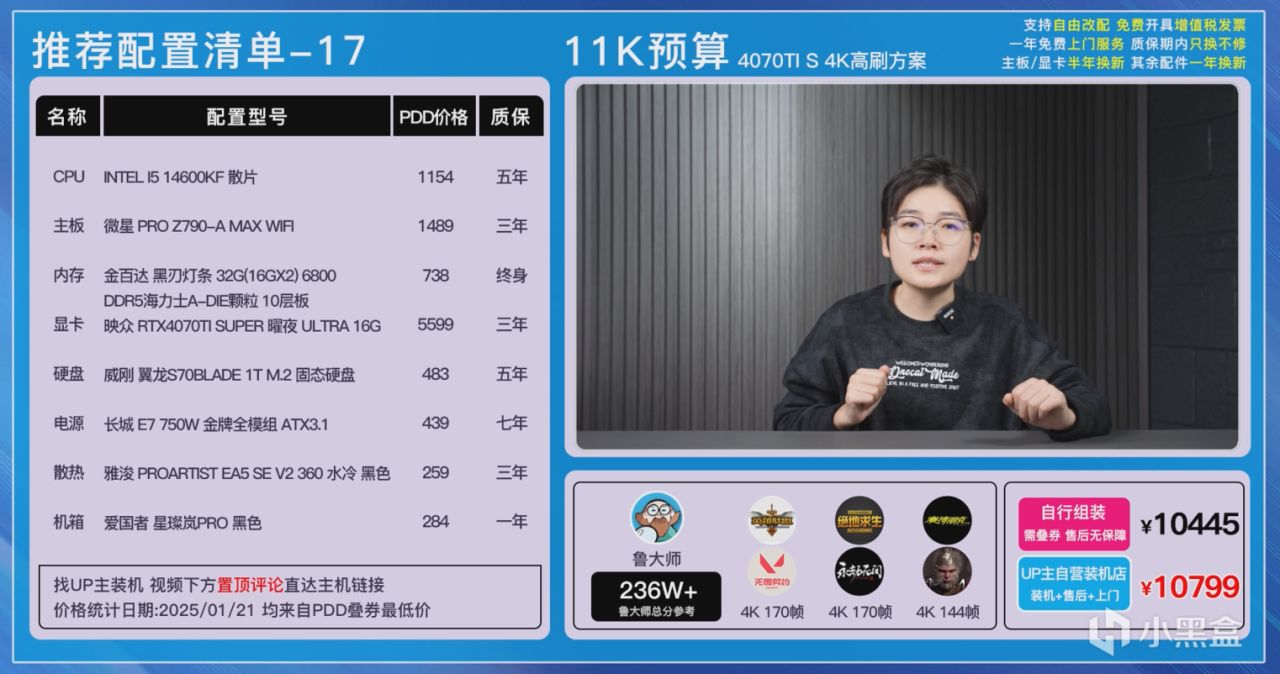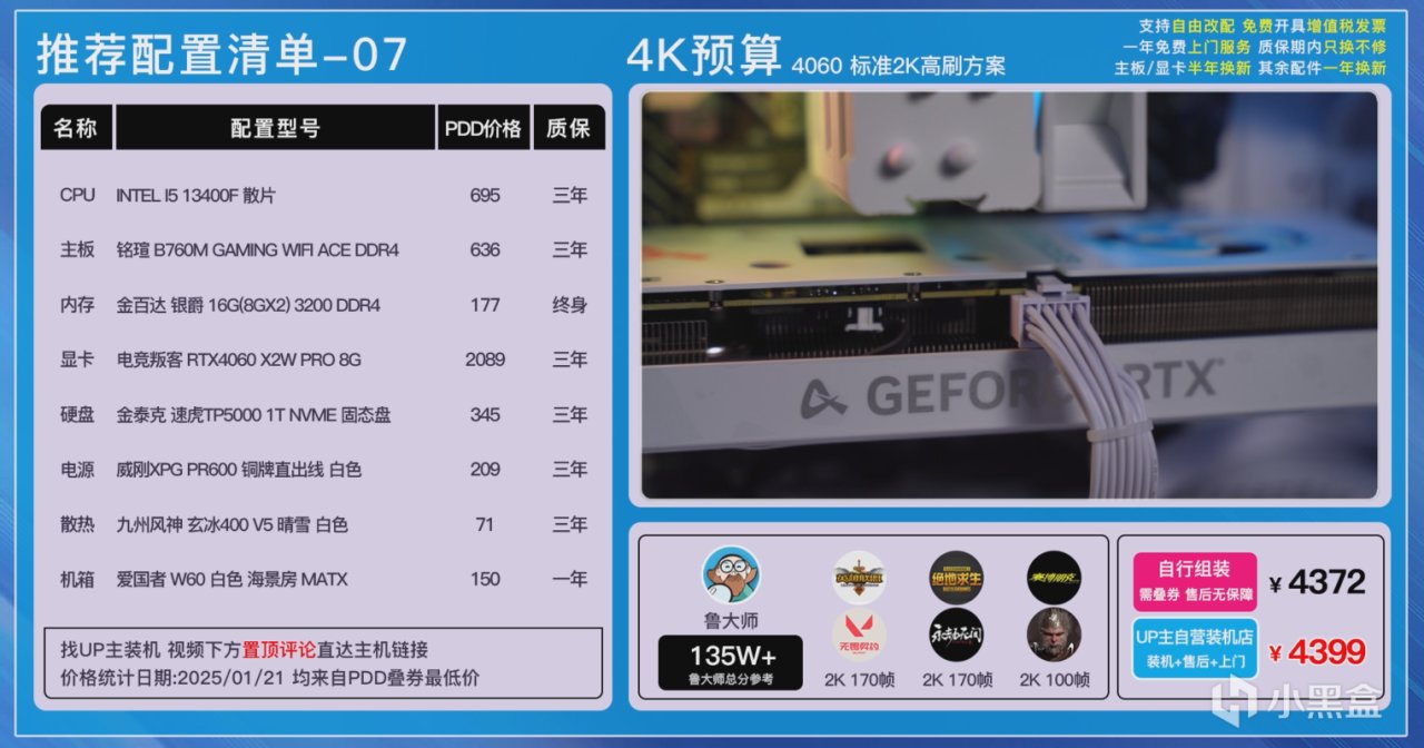 本期《和微论件2025年2月主机配置推荐》依然贯彻我们的理念,不做无脑推荐!这一次我们是总共准备了24套不同预算的整机方案,其中分为7套无卡方案以及17套带卡方案,价位段涵盖2-11K,为什么这么便宜呢?因为显卡方面我们最多只推荐到4070TI SUPER,毕竟5090D和5080发售在即,价格与现在4090D和4080SUEPR接近,已经没有必要再考虑4090D以及4080SUPER这两张显卡了。