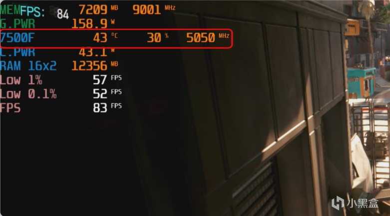 在实际的游戏过程中,频率是完全跑满至5.05Ghz,温度仅为50度上下,这一套平台让7500F发挥算是毫无压力了。