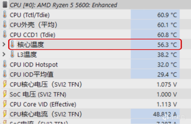 九州风神的玄冰400 V5晴雪则是可以压到56.3度,散热使用4热管的风冷进行压制其实是不用有任何担心的。