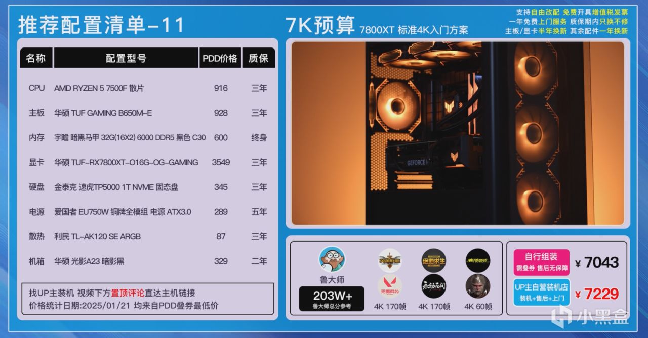 搭配7500F的显卡,4060、4060Ti、7700XT、7800XT、4070SUPER甚至是4070TI SUPER我们都可以考虑,不过4060Ti以及7700XT目前涨价,不推荐购买。