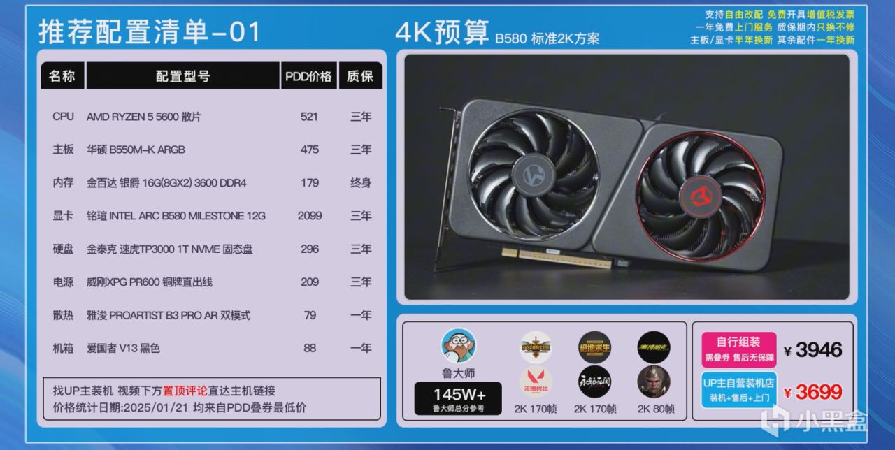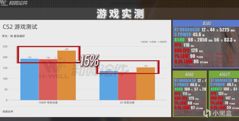 搭配B580的方案我们是刚才配置的基础上增加了显卡,我们之前对这张显卡进行过测试,在几款DX11的游戏中B580的表现要领先4060约9%,