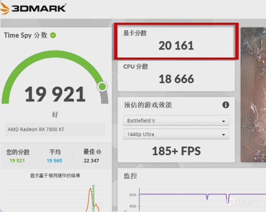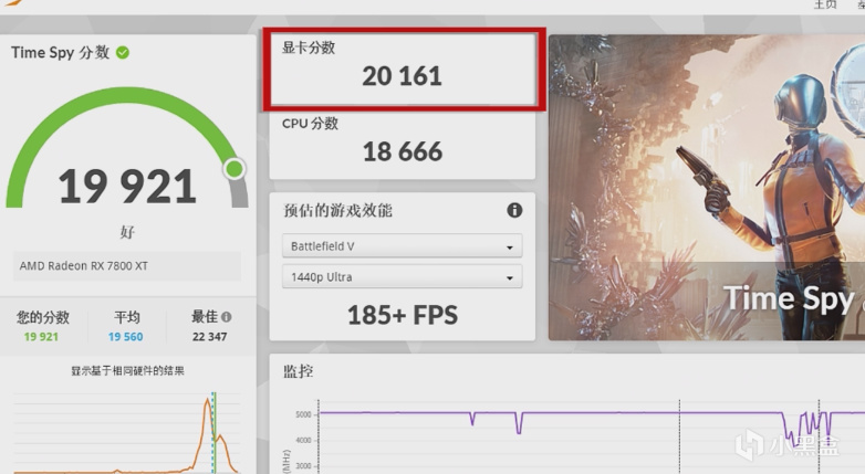 华硕的TUF 7800XT在3D MARK TIME SPY 得分20161分,