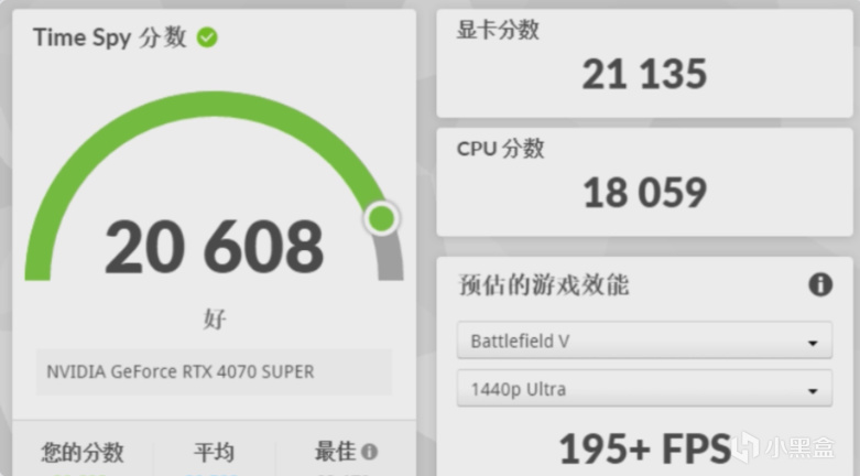 华硕的4070 SUPER巨齿鲨在3D Mark Time Spy得分21135分,