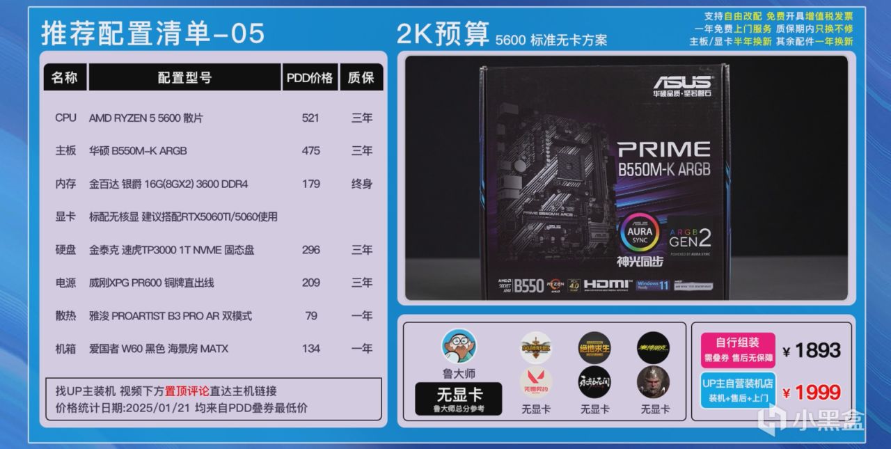 首先是一套5600无卡方案,如果你现在已经有显卡,并且考虑后续更换5060或者5060Ti,这套方案每个硬件的选择是可以参考一下的。