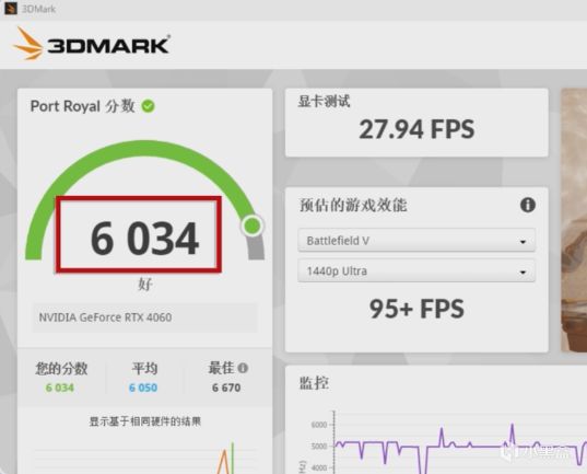 Port Royal得分7926分,跑分甚至持平4060Ti,