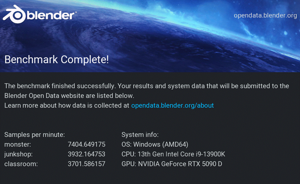 同时在3D设计和渲染领域里,RTX 5090D在blender benchmark 4.3.0版本中的测试总分为15038.4,相较RTX 4090 D提升43%;RTX 5090 D在V-Ray 6.0中的得分则是15131 vpaths,比RTX 4090D高出38%。这基本代表了RTX 5090D在数字设计生产力方面的性能,有着中规中矩的性能提升。