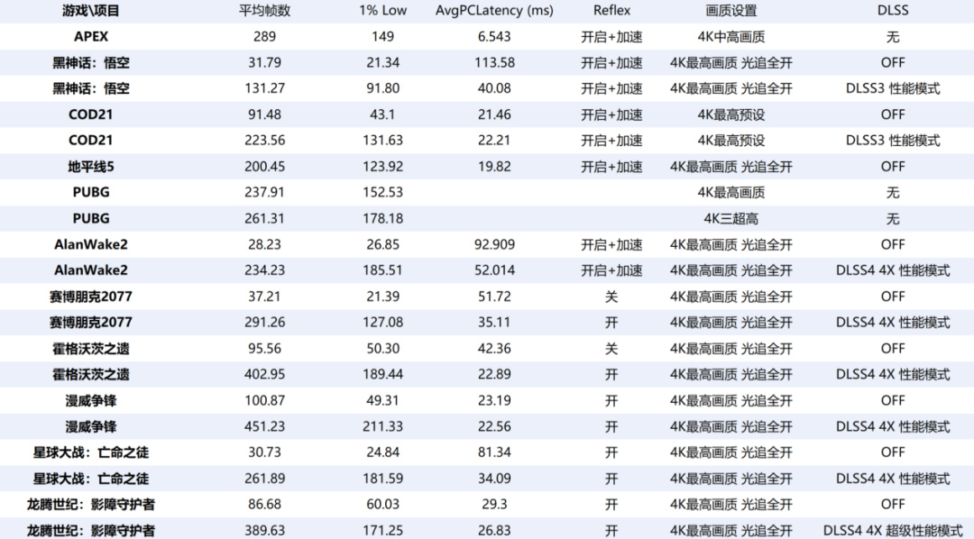 放到实际的游戏中,RTX 5090D的综合表现基本可以用这一张图片来概括: