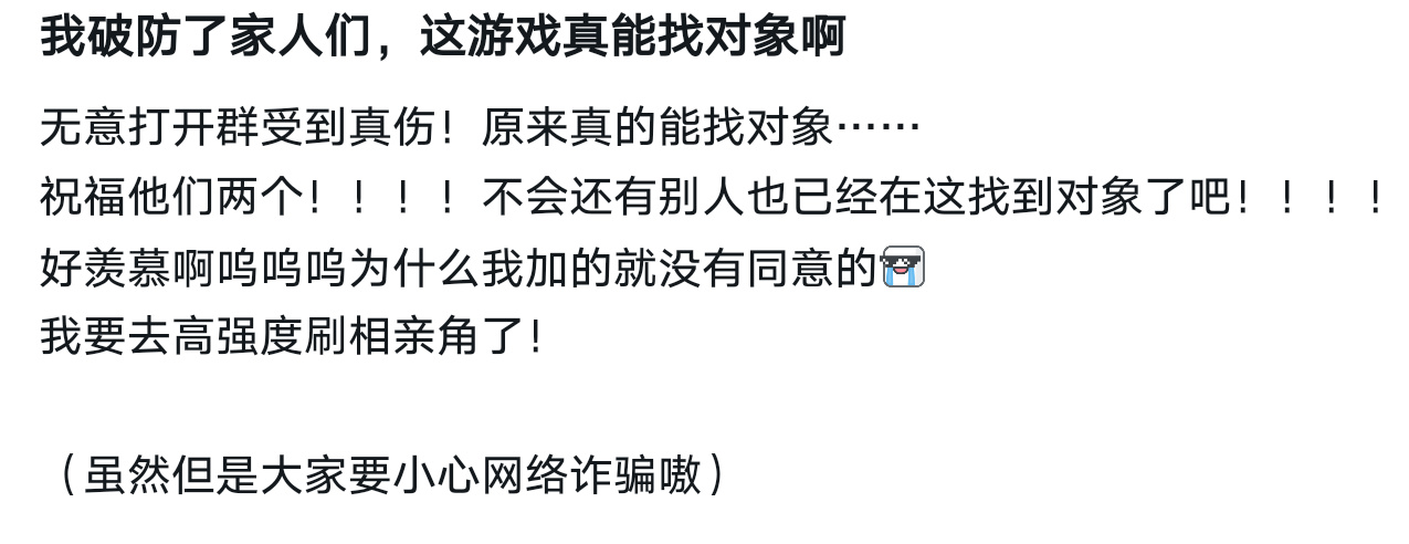 需要确认的一点是:只要你点开了相亲角便有可能被挂上去,但是随着游戏销量的提升会冲淡你被刷到的概率,并且不打上个人介绍词条的话,也有很大的概率不会被刷到。