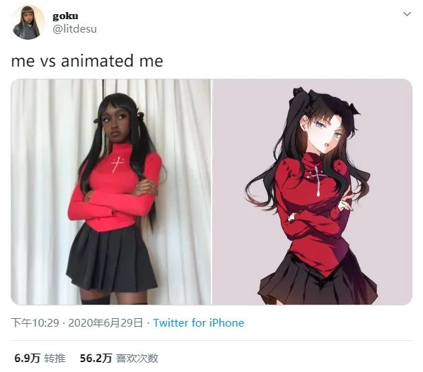 这个得追溯到5年前,之前推特上有一个挺火的黑妹cos远坂凛,我查了一下这个推特号已经注销了,但是这个信息中文互联网上还有很多。大致说是她没资格cos远坂凛,在蓝鸟上骂了上万条。(现在回头看政治正确还没那么严重)