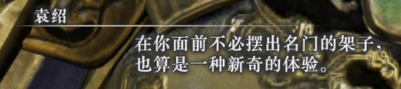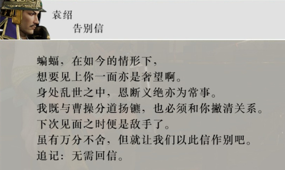 白马延津之战,紫鸾阵斩颜良文丑之后,收到了袁大小姐的最后一封信,也是袁绍剧情的最终章,剧情的欢乐程度达到了顶点。虽然写了无需回复的最终傲娇告别信,但袁大小姐在官渡之战前坐在篝火前一直等着紫鸾,这是什么罗密欧与朱丽叶——我和敌国私下相爱的贵族大小姐的交战前夜啊。看到主角后喜不自胜,因为这是最后的会面,终于放下了傲娇的架子开始疯狂吐露爱意,聊到最后还换地方再聊然后就切黑屏结束了,我服了,毫无疑问的本年度最欢乐剧情,我直接笑出声了都。