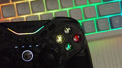 双霍尔加背键的设计,且内置6轴陀螺仪,1000mAh大电池续航持久,APP里还能设置按键映射玩非原生游戏。
