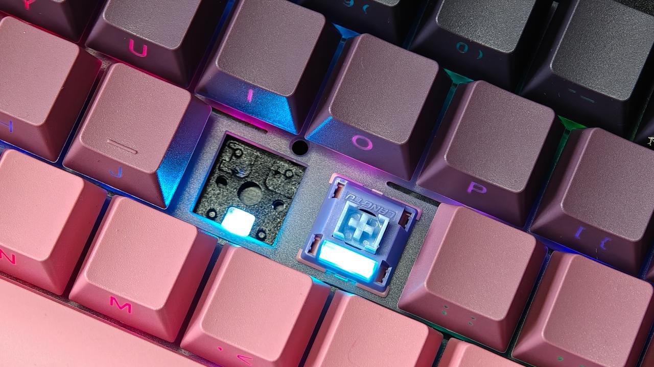 所以我选择了狼途T88马卡龙轴,7层消音填充,单键开槽FR4 PCB,三模,支持1ms低延迟,PBT侧刻下灯位,多系统支持。