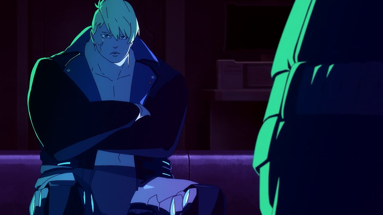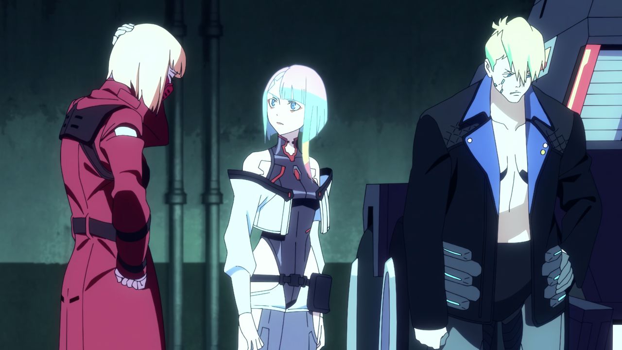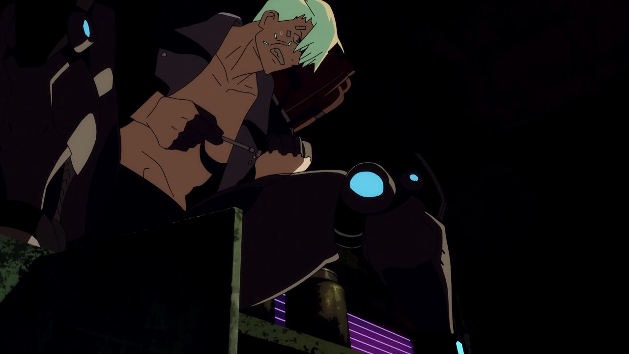 Not much later, Dorio trained her gaze on an Animal; a simple random guy whom she observed, followed and stalked. At the same time, Dorio began thinking of killing him, someone that didn't know her nor what had happened to her. And finally, one night, Dorio decided to proceed with her thoughts to quench her rising hatred. She followed the Animal to a bar, watched him drink (which was a lot), and when he went to the bathroom, Dorio followed behind. Once he started his business, Dorio pulled the gun on his head, but failed to pull the trigger. A split second later, she was on the floor with a broken nose and with the Animal in front of her pointing Dorio with her own gun. But he didn't fire either, as his brain was exploding from the gunshot of another shooter. A guy called Maine had saved Dorio's life, someone who had been stalking her while she stalked the Animal. He helped Dorio up and mentioned he was looking for people for his mercenary crew of edgerunners. Those words meant something for Dorio, who accepted to join his crew in a heartbeat.