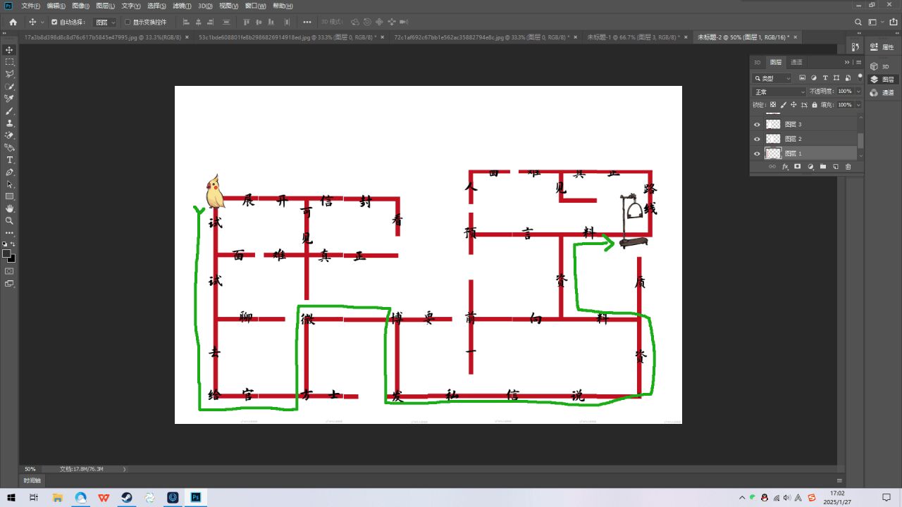 圖片較長需要上下滑動很難得到有用信息,將圖片內容進行拼接後發現爲一個迷宮,內容爲“試試去給官方微博發私信說資料資料”,這裏我已經徹底驚呆了。