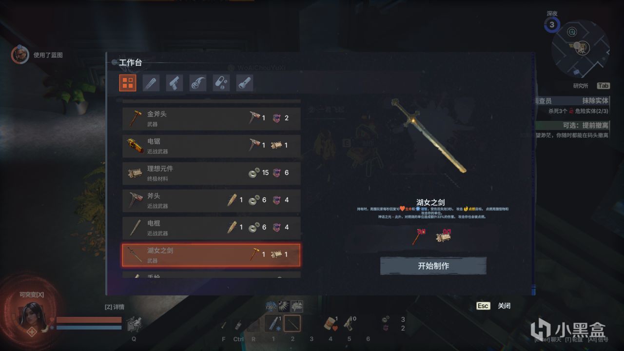武器思路:搜集零件和幽霾做斧头,然后找空投里面理想原件,实在找不到可以多刷怪做出来,然后走电锯