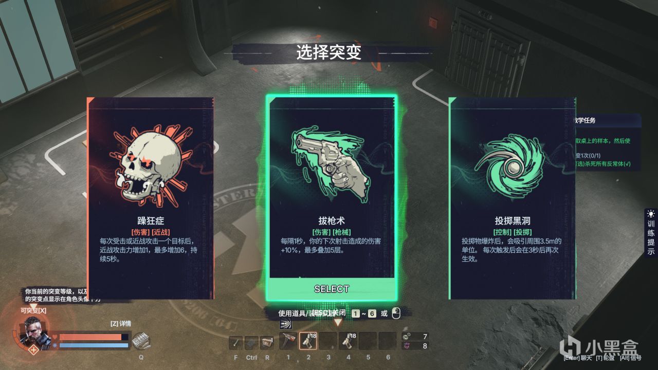 突变技能的选择上:我们全部点与近战有关的所有技能就行,实在没有的话,到时候技能也是可以去重新roll点的,不用担心。