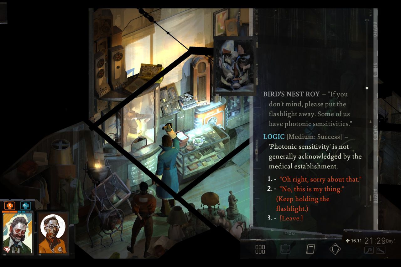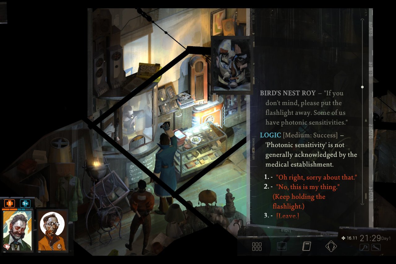 另外在當鋪如果開手電筒🔦和羅伊對話,羅伊會難受地擺手,並請你關掉手電筒。也是呼應了過量核輻射造成的對強光的敏感或過度反應了。