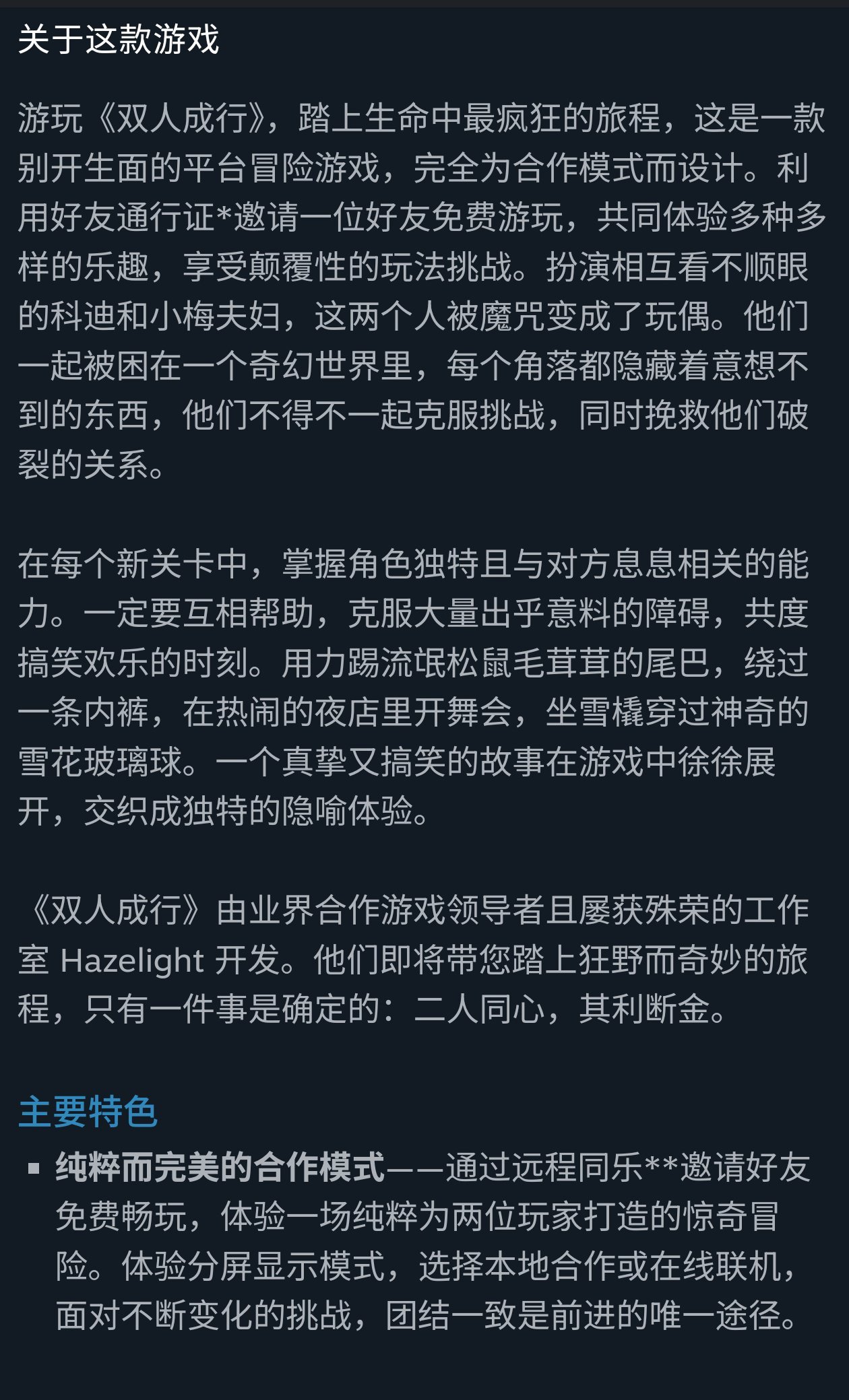 冬促剛39.6,春節特惠又迎來史低價格¥39.6,上次沒有入手的這次不要錯過了,雙人遊戲,非常好玩,值得入手