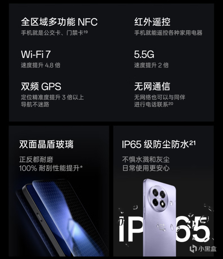 一加13是妥妥的全能旗舰了,后背外观相比一加12做了精简,正面6.8英寸等深四曲面屏,直屏观感曲屏手感,视野宽阔,握感扎实不割手,质感非常优秀。一加13的屏幕覆盖了晶盾超瓷晶玻璃,抗跌落性能对比普通玻璃提升500%,抗冲击性能提升70%,美观耐用兼具,湿水触控、手套触控也非常实用,一加13还支持IP68防尘防水以及IP69防高压高温水流冲击,各种复杂场景无所畏惧!