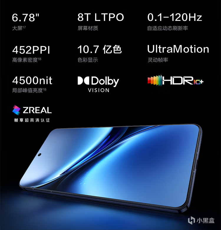 vivo X200 Pro正面采用一块6.78英寸全等深四曲面屏幕,1.5K分辨率,支持0.1Hz-120Hz自适应刷新率和2160Hz全亮度高频调光,峰值亮度可达4500nit,支持10.7亿色,通过SGS硬件级低蓝光认证,屏幕正面指纹采用3D超声波指纹,解锁速度非常快。
