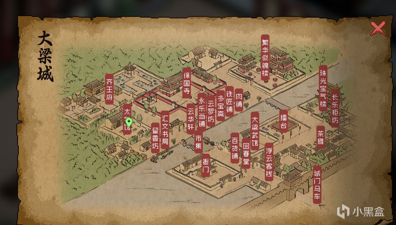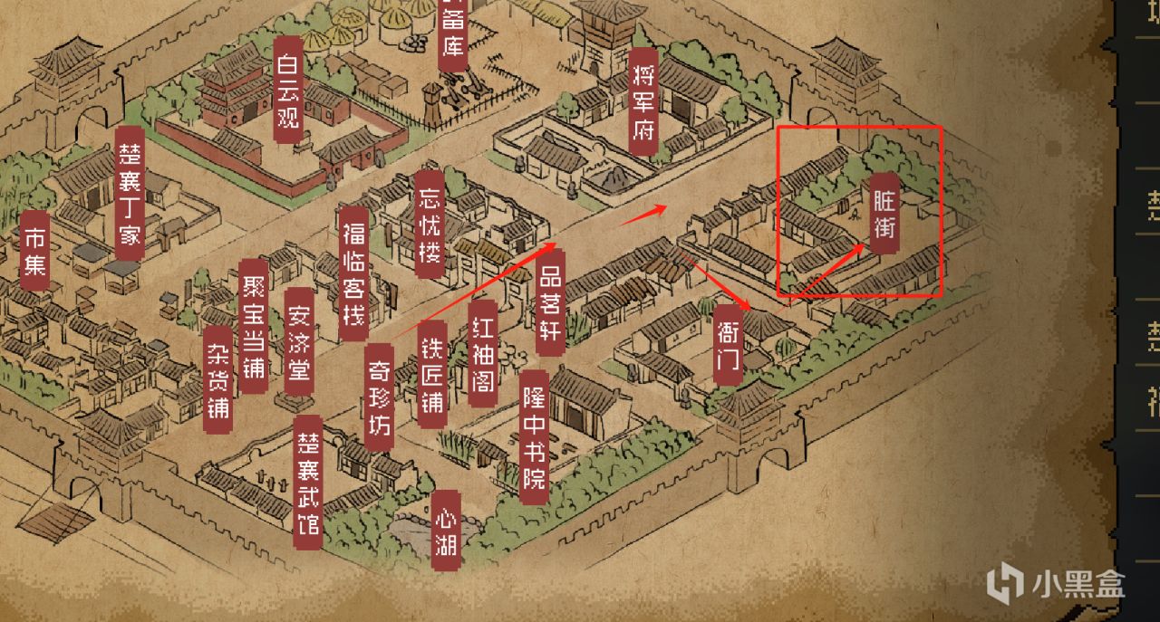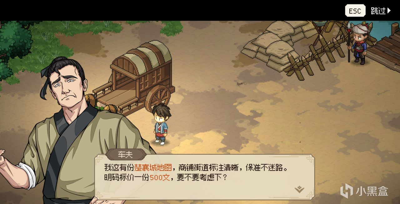 1.流程正式的开始前往楚襄城,在进城前先车夫买地图,必买!