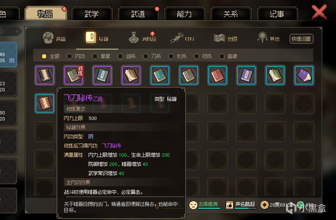 8.武馆几个NPC赢了获得匕首紫色心法!选择为自己战斗即可!