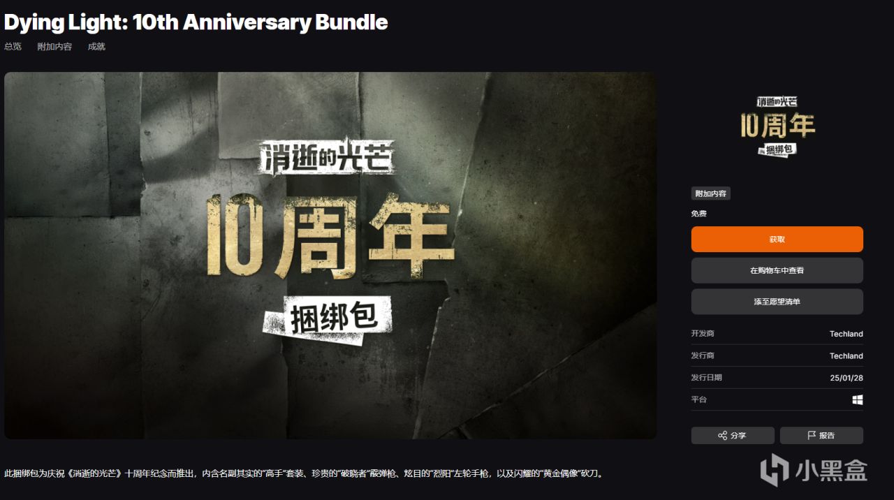 《消逝的光芒》十週年了,推出了紀念DLC和許多活動,該DLC,steam和EPIC均可領取。(之前EPIC送過,應該很多小夥伴都有!記得領!