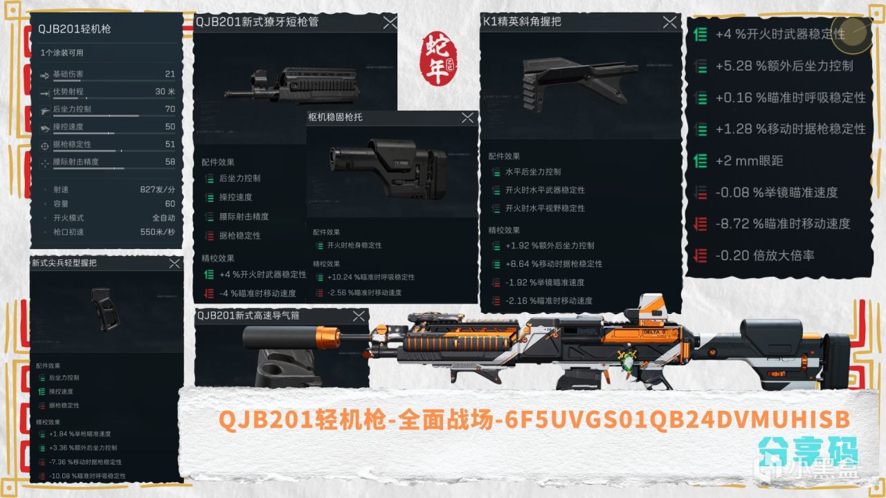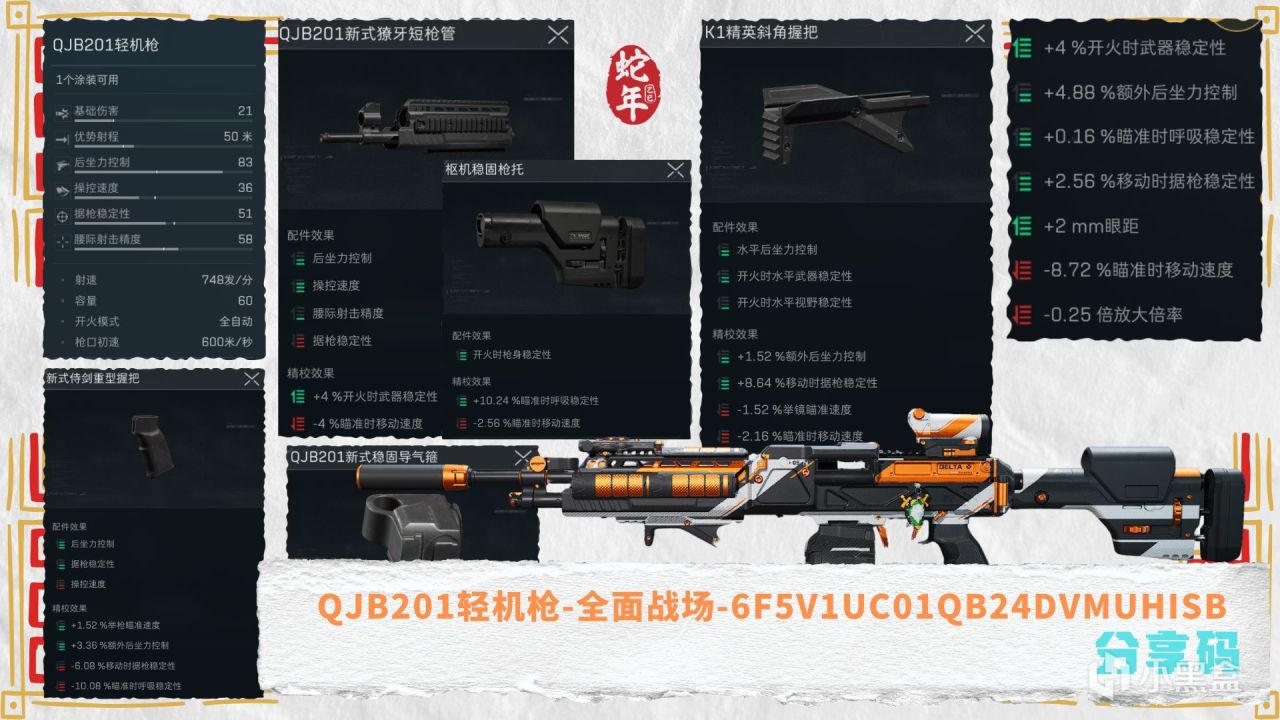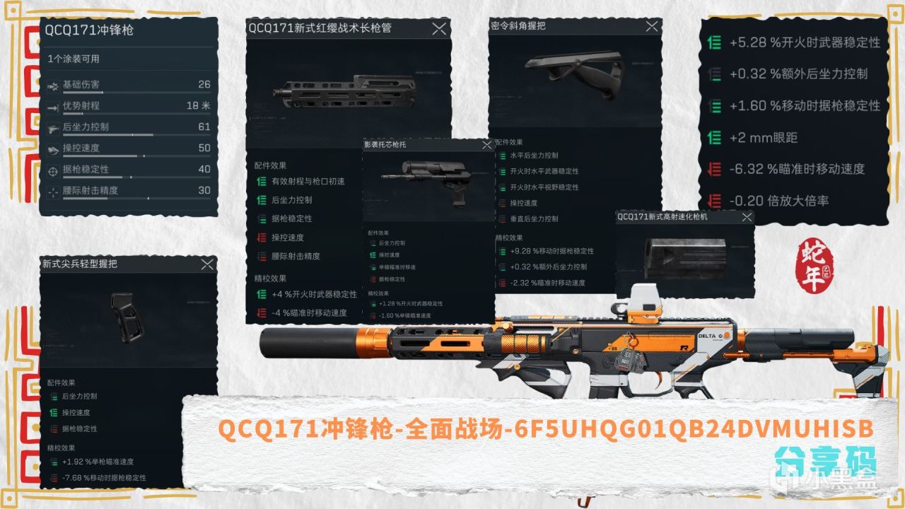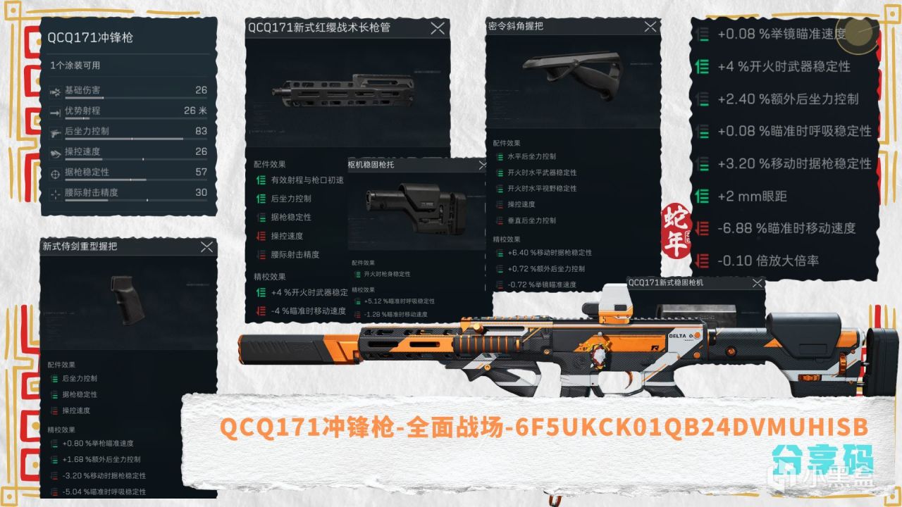 最近版本更新,新增加两把国产枪---QCQ171冲锋枪、QJB201轻机枪,加上之前出的QBZ95-1突击步枪及腾龙突击步枪,都是强力的武器。在新年到来之际,为大家带来这几把武器的全面战场配装方案,希望大家玩得开心,先祝大家新年快乐。