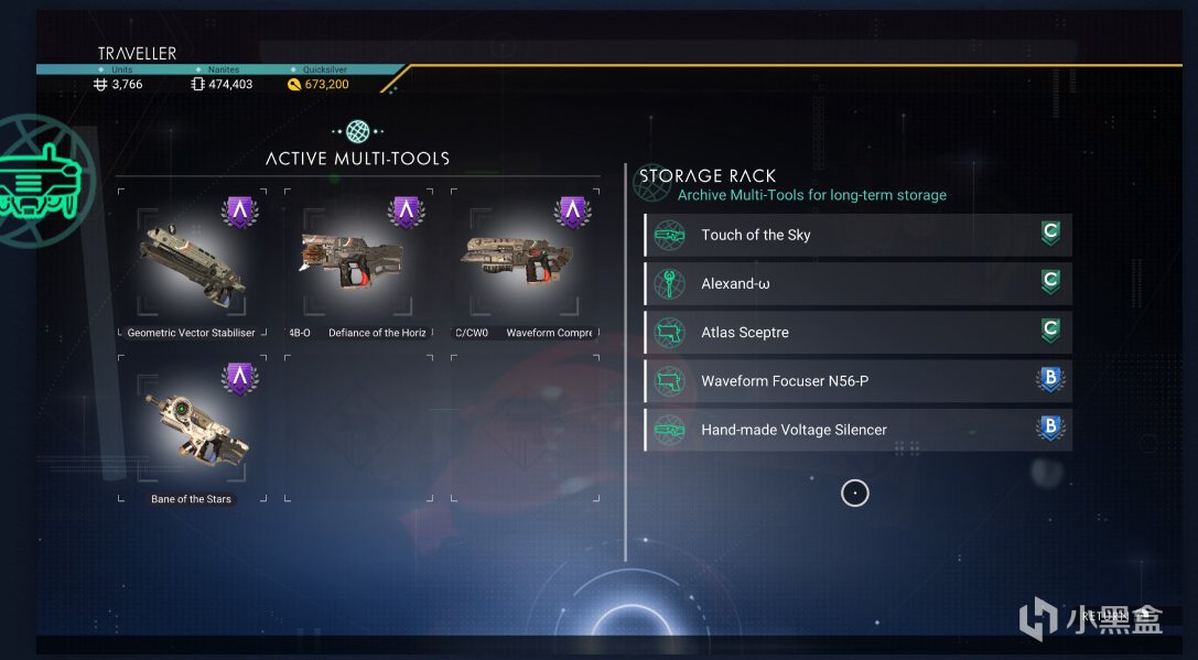 可拼搭的武器架底座部件现在允许旅行者存档多达 18 个多功能工具,从而腾出空间来获得新装备。Archived Multi-Tools 保留所有已安装的技术,并可以随时重新激活。