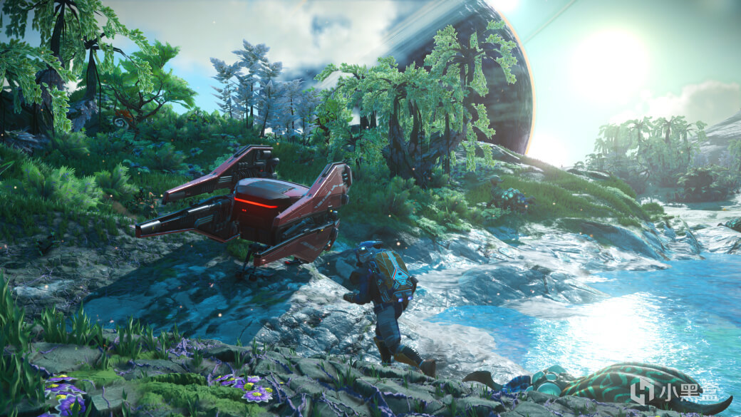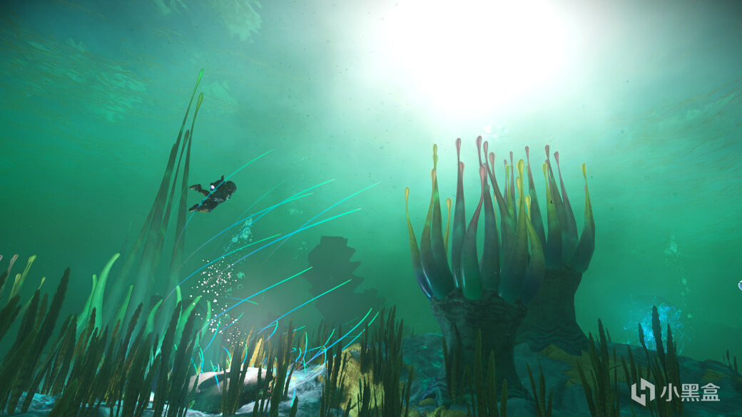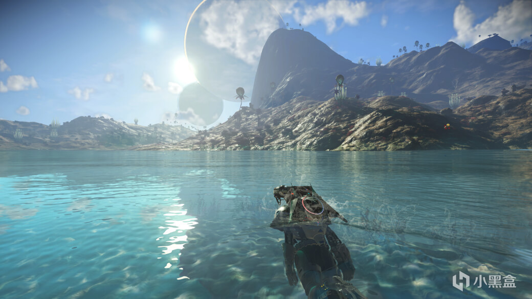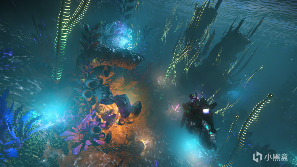 现在,水面的保真度要高得多。云、星云和其他行星现在被反射,并且地形反射已通过精确的照明和雾化得到改进。次表面散射已得到增强,当太阳光擦过波峰时,会产生壮观的光芒。泡沫的多样性也有所增加,一些行星上出现了发光泡沫。