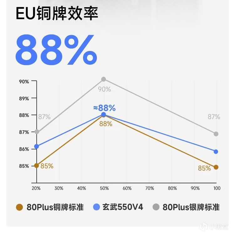550v4为额定600w的铜牌电源,负载为54%,效率是高于87.5%的。