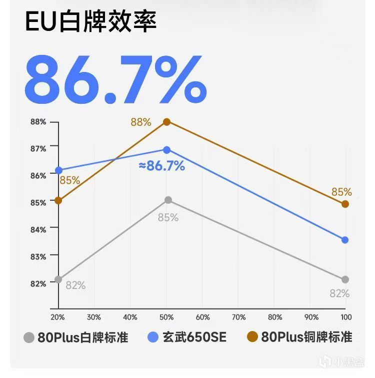 650se为额定650w的白牌电源,半载效率为86.7%。