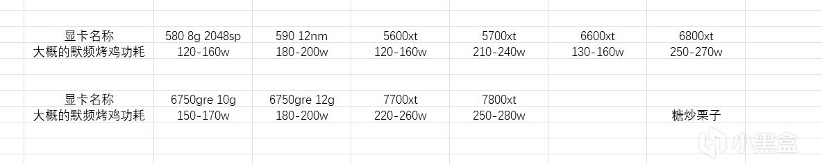 归纳了常见的cpu及显卡的烤机功耗,以下数据均来源于视频及论坛的玩家分享。