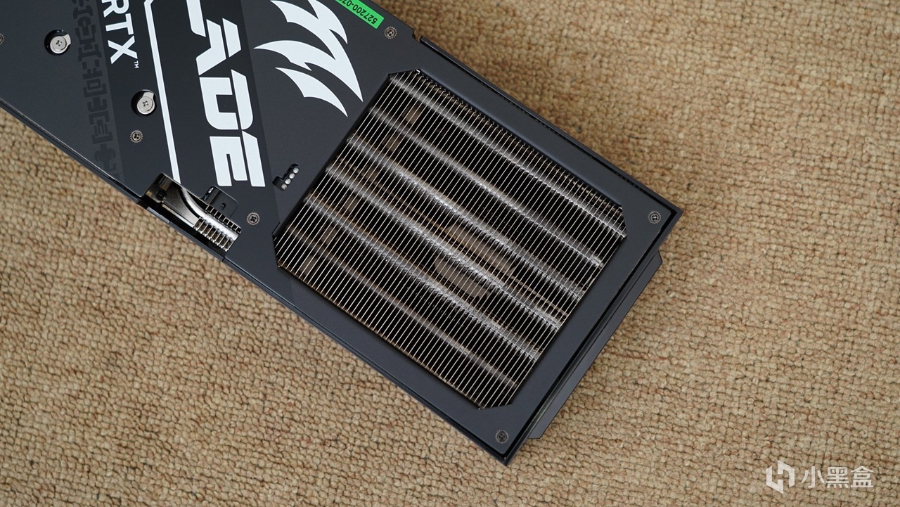 顯卡背板尾端採用大面積鏤空設計,這樣能夠形成自下而上的風道,大大提高了散熱效能。